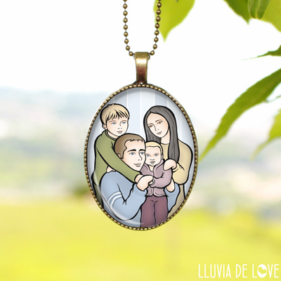 Podrás tener un colgante personalizado que nadie más lucirá, para llevar contigo a la persona que más quieres, tu niño, tu amigo del alma o tu mascota, que también es parte de tu familia. No es un dibujo cualquiera que les representa, sino que son ellas mismas, en la pose o actitud que tú elijas... una ilustración creada expresamente para ti.